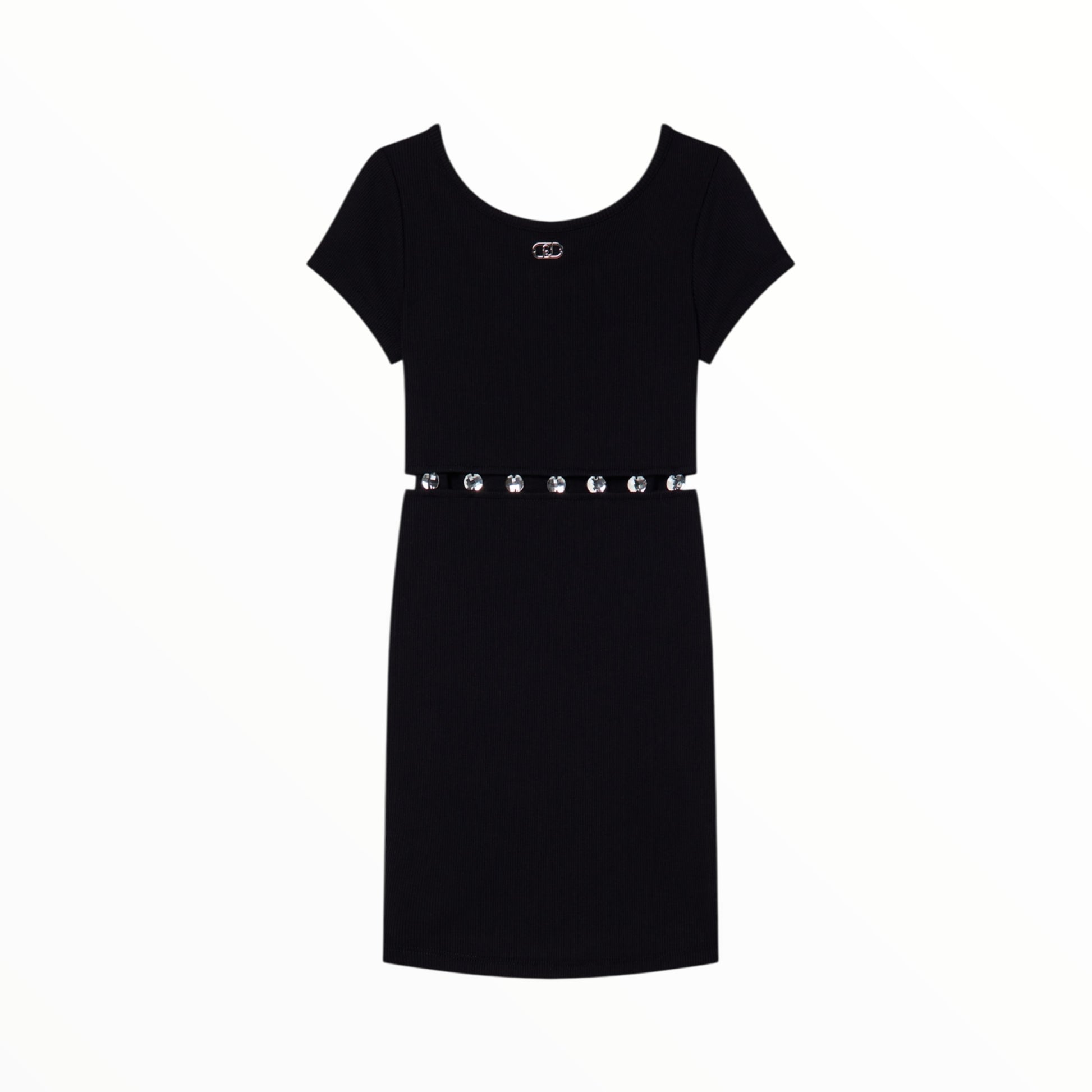 Abito a costine con castoni gioiello in vita.