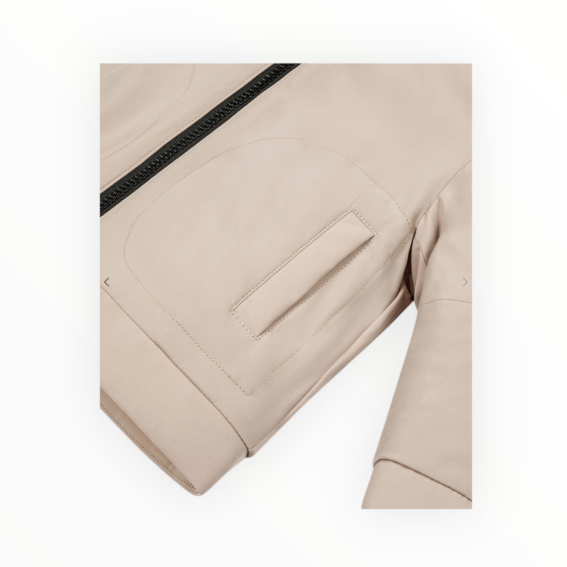 Cappuccio fisso; in poliestere stretch e jersey; zip centrale e tasche con zip; imbottitura in sintetico; polsini antivento in contrasto; trattamento idrorepellente PFC free.